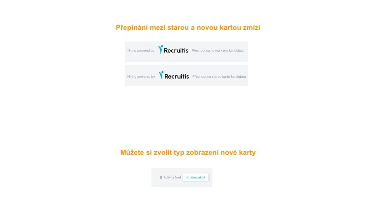 V rámci nové karty kandidáta zůstává možnost přepínání mezi jejími dvěma typy. Více ke dvěma typům zobrazení karty kandidáta naleznete v tomto článku.