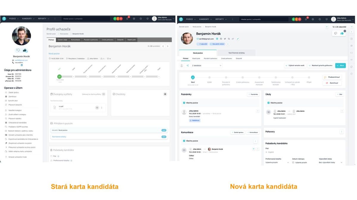 Pokud ještě stále pracujete se starou kartou kandidáta, přepne se vám automaticky 1. března na novou kartu v zobrazení "kompaktní":