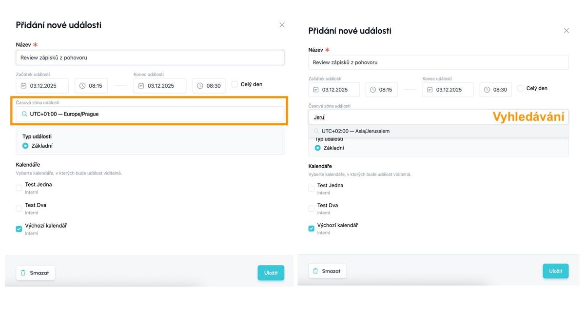 Po změně nastavení se budou veškeré události v kalendáři přepočítávat na toto vybrané časové pásmo.
