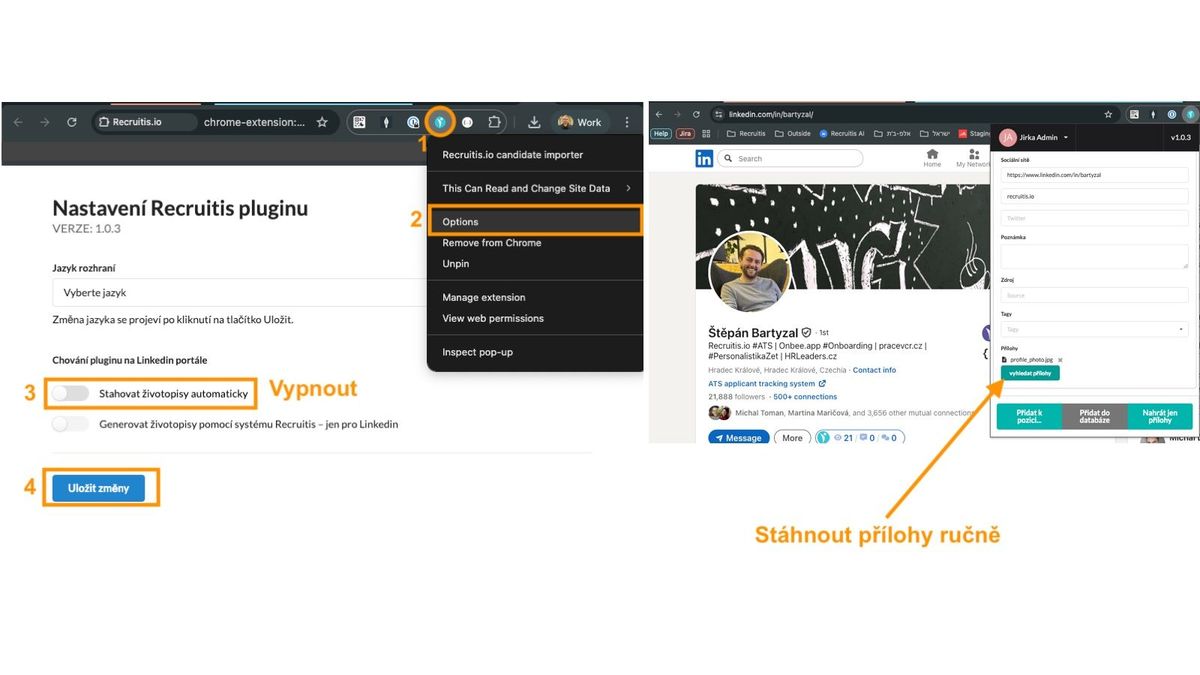 Kromě nižší frekvence užívání našeho pluginu může, pokud to je váš scénář, také například omezit stahování CV se sítě LinkedIn jen na případy, kdy to výslovně povolíte na daném profilu, resp. kdy o to na daném profilu výslovně požádáte pomocí tlačítka v pluginu. Je pro to potřeba udělat následující: