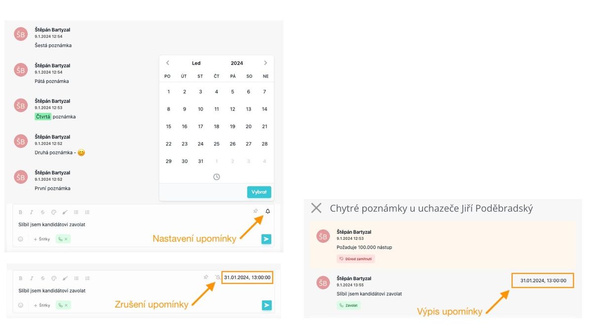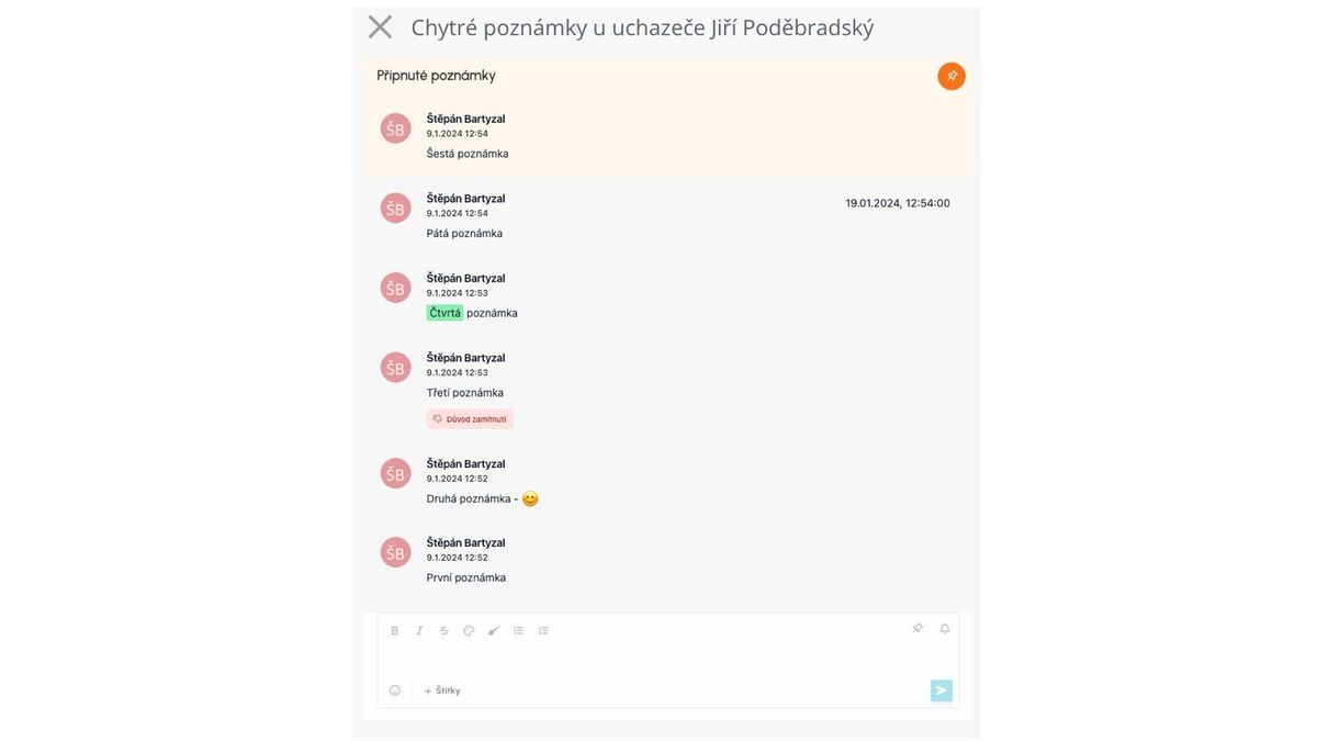Opombe v okviru ATS Recruitis služijo za beleženje pomembnih informacij o kandidatih in pozicijah.