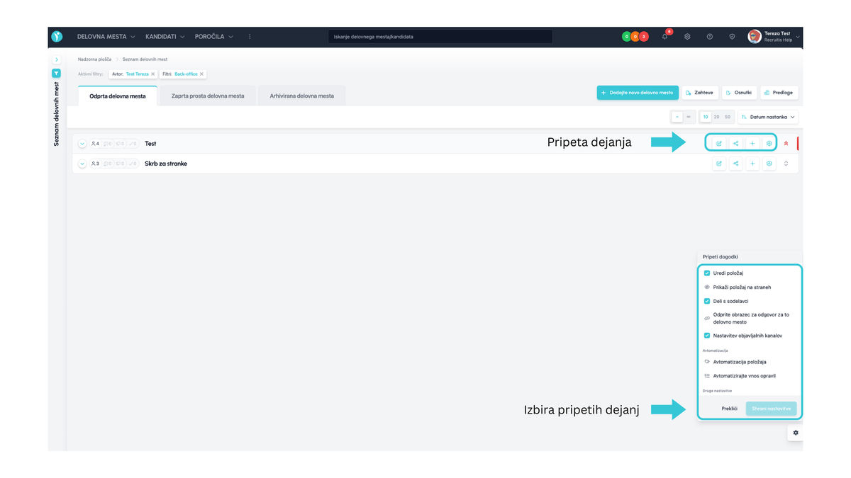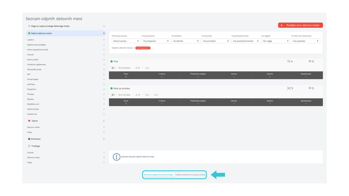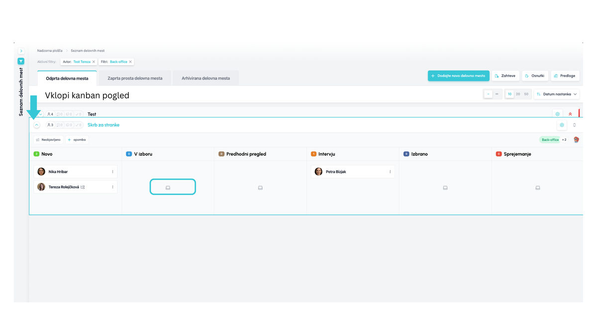Z kandidati lahko zdaj delate neposredno v seznamu pozic (brez prehoda v detajl pozicije) – s klikom na ikono na levi prikažete kanban pogled.