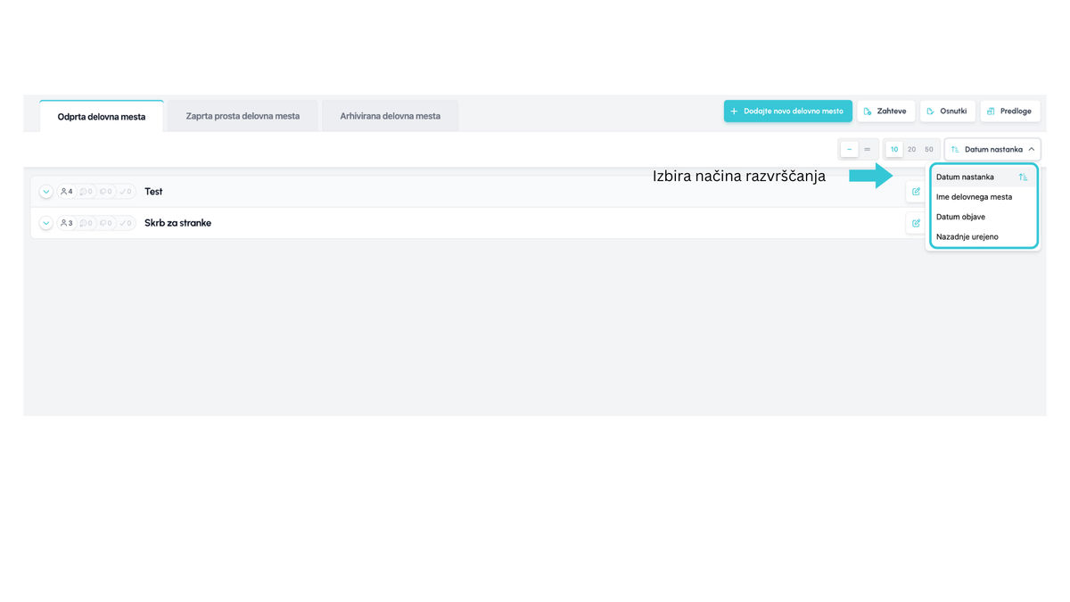 V okviru te nadgradnje smo dodali tudi nove načine razvrščanja pozic, ki so bile prej fiksno razvrščene kronološko po datumu ustvarjanja (od najnovejše).